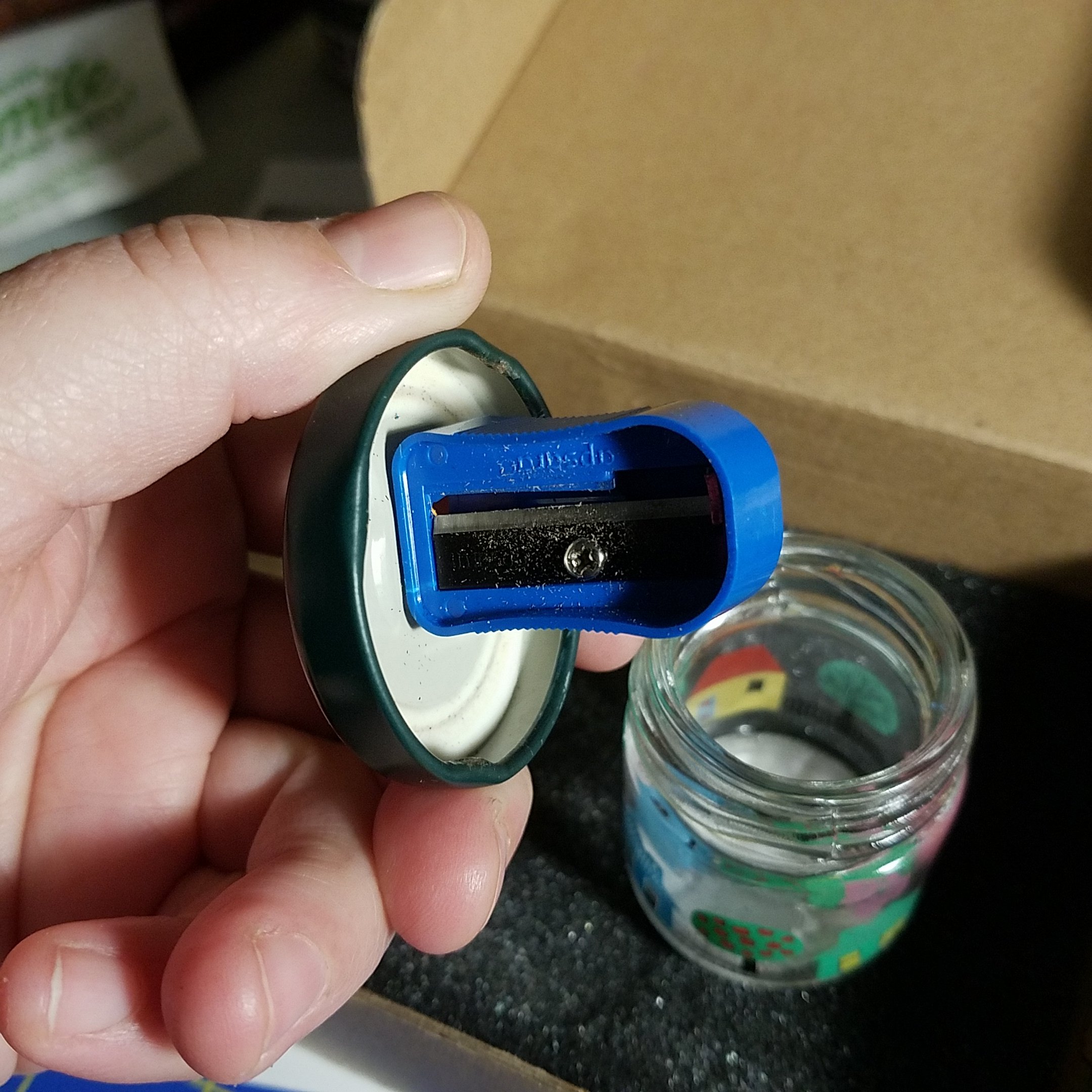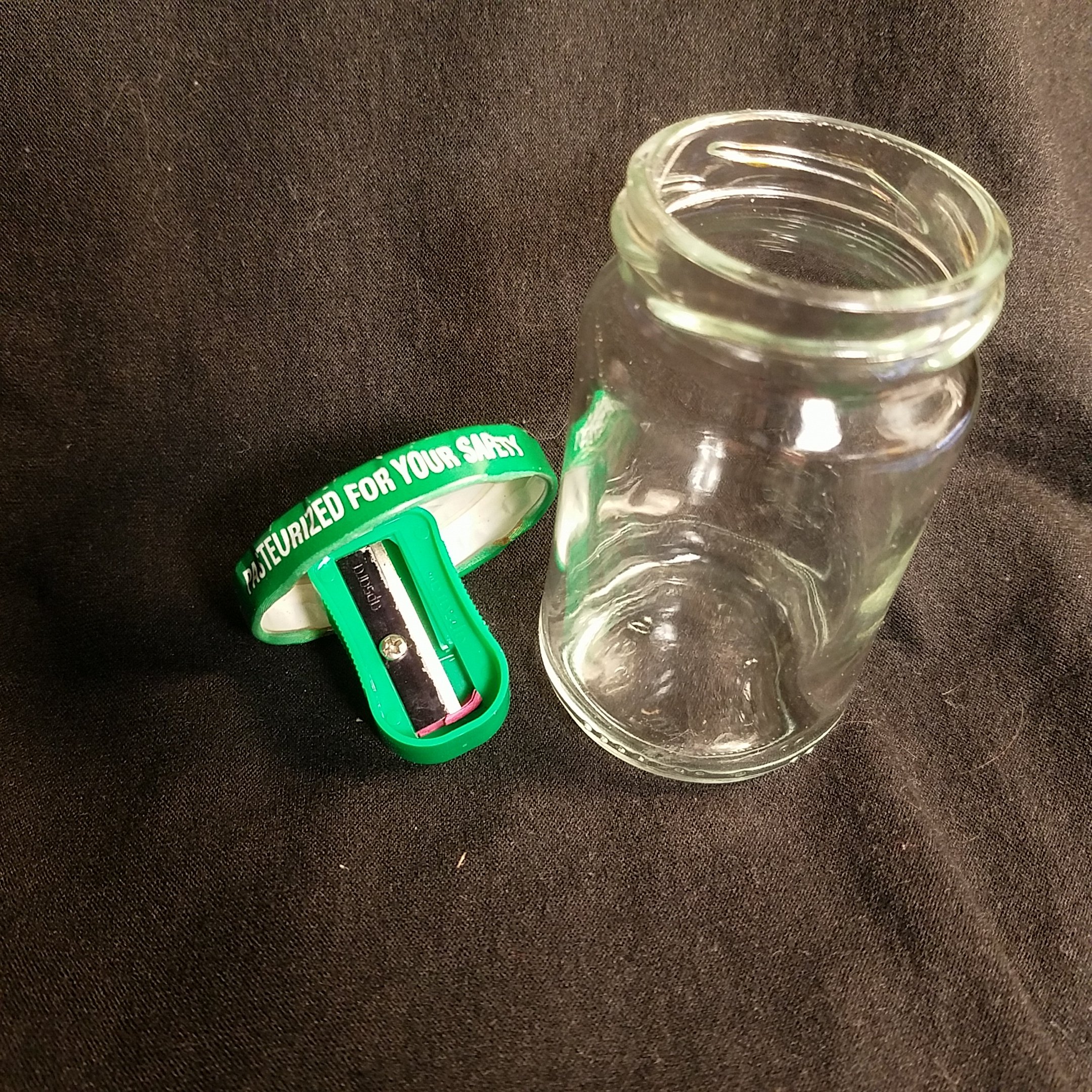 This got me thinking, could I attach a sharpener in other small glass jars in my recycling bin? Or other jars?