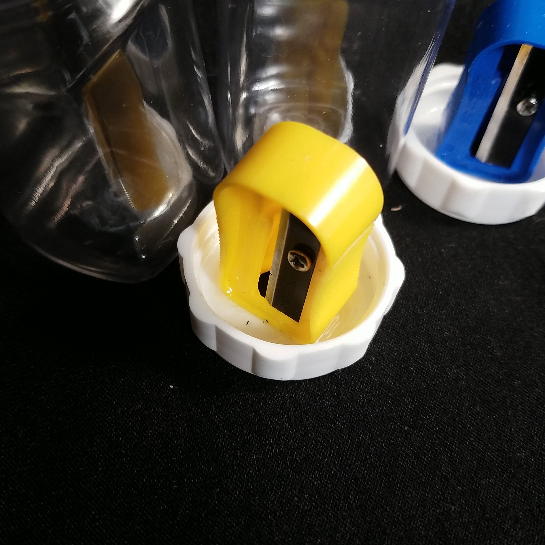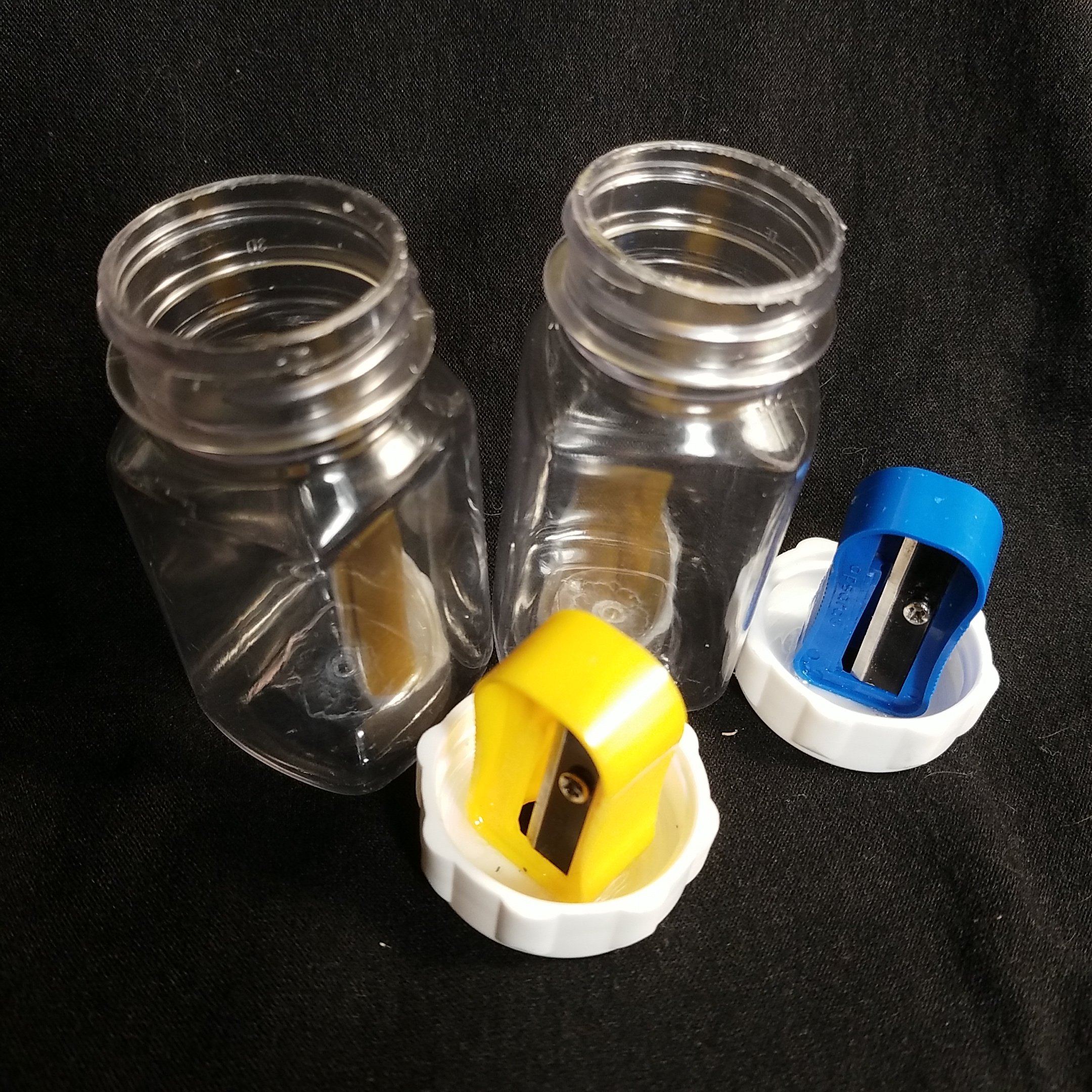 The answer is yes. I pulled a bunch of tiny jars and drilled out holes in the lids. Then I glued in the sharpeners and added screws for additional durability. The little sharpener jars make me so happy. I’ve also attached the sharpeners to the lids of an espresso take out cup.