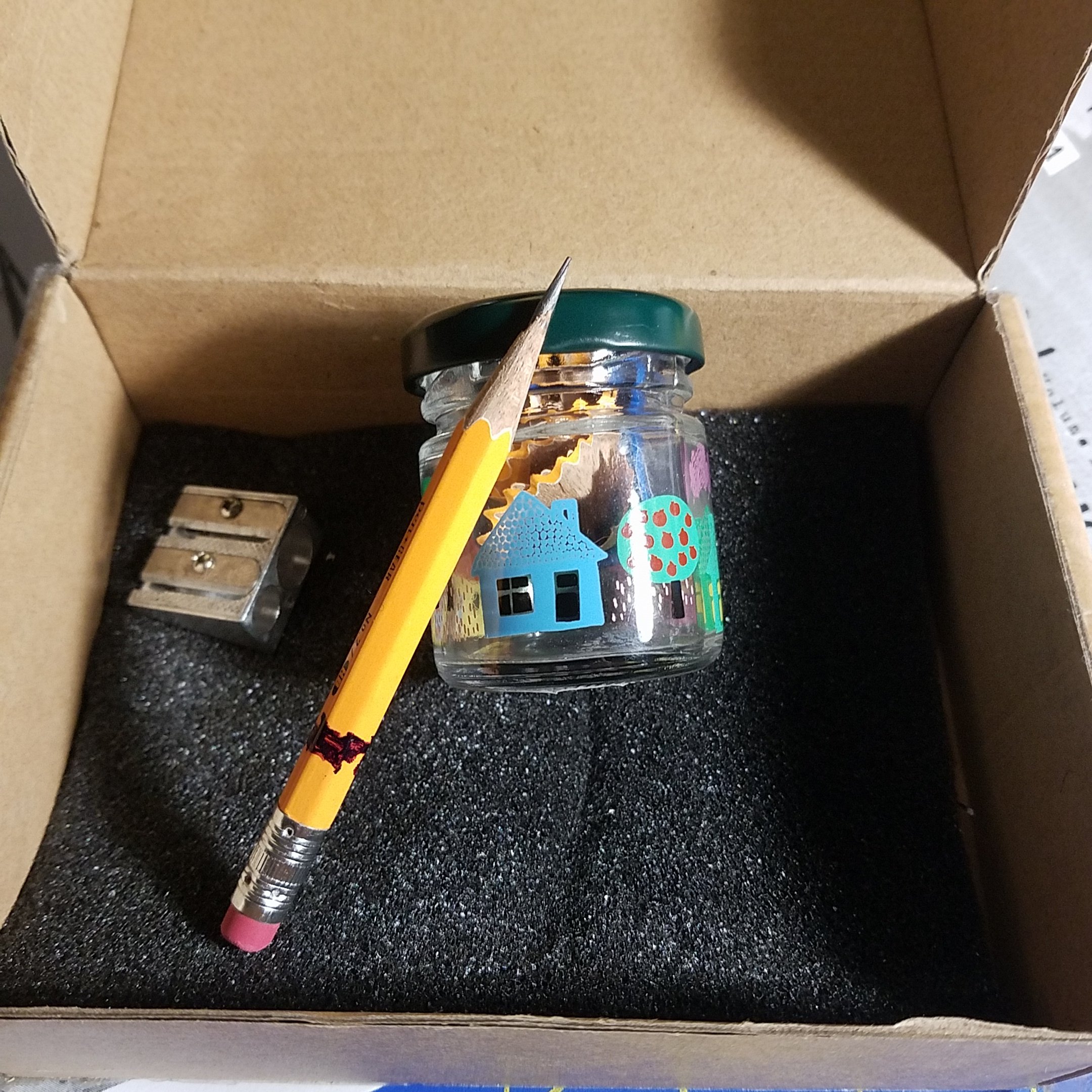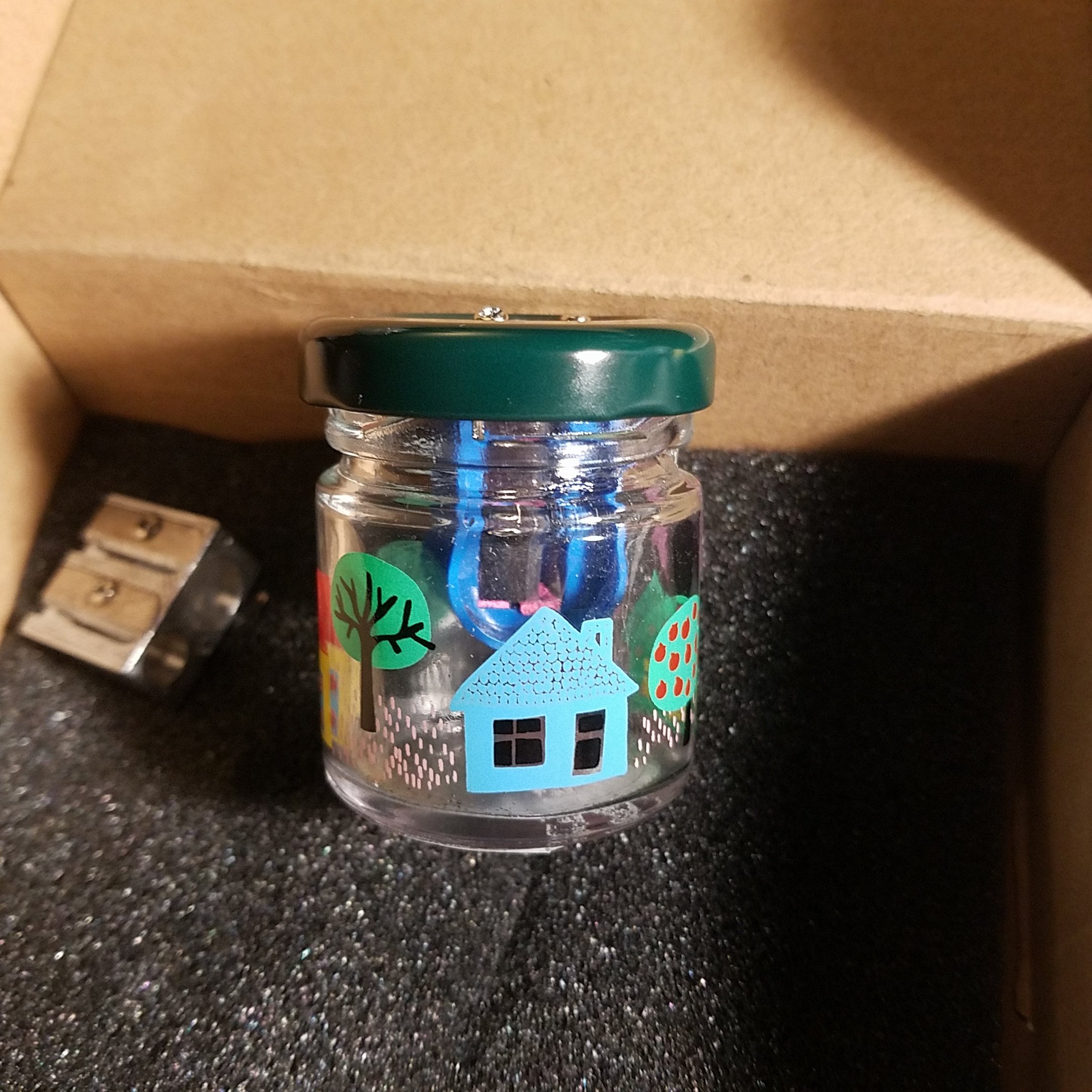 I ordered another box of apsara long point sharpeners and a box of tiny screws to make these. I’m having a lot of fun. Now I need to find an assortment of small glass jars.