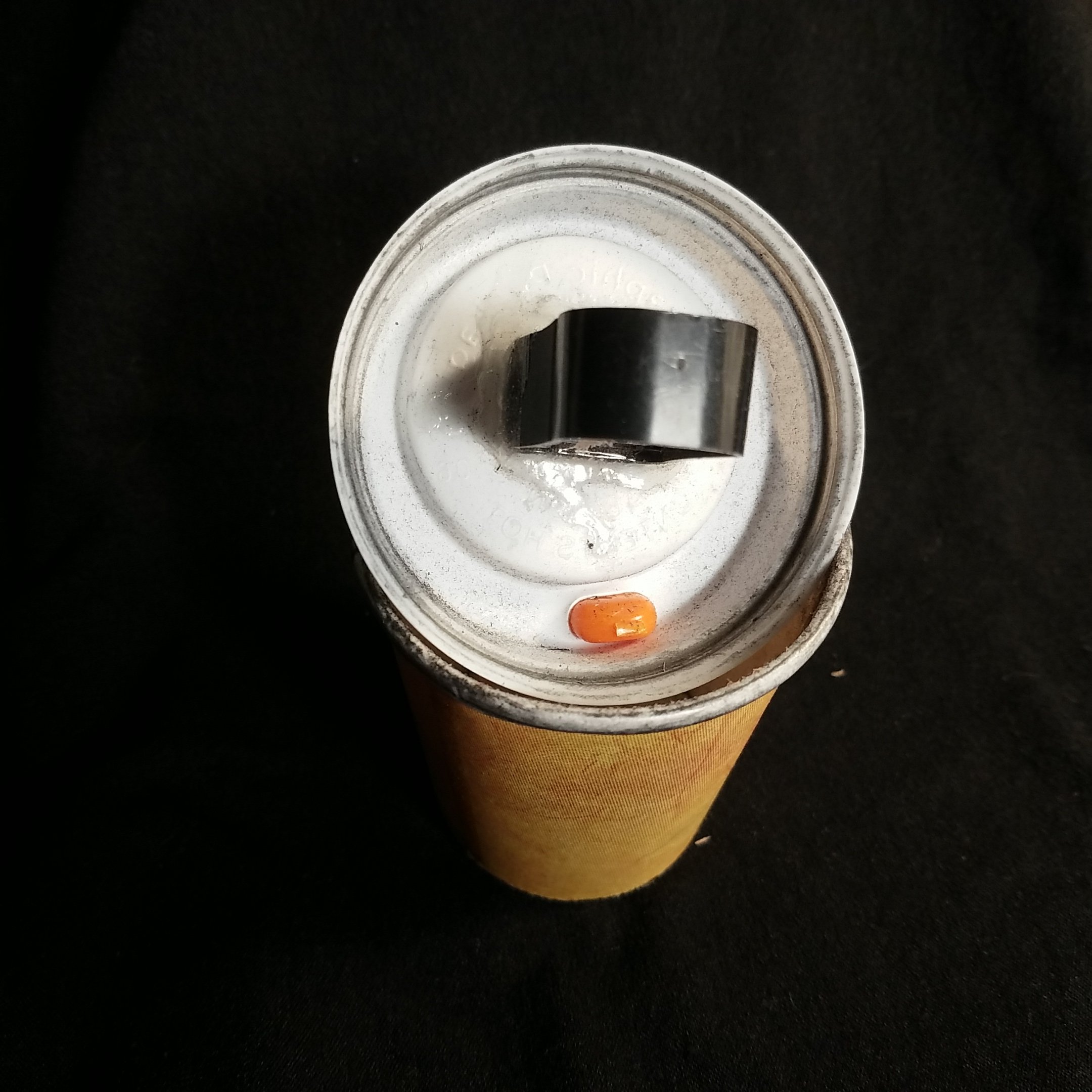 I tossed the lid and pulled the screws from the sharpener. I then rooted around my recycle bin and found a lid that fit the cute glass jar. I then drilled out a hole with a step bit. I then attached a fresh new Apsara Long Point sharpener that I had hacked. I added 2 screws to hold it in place. Perfect.