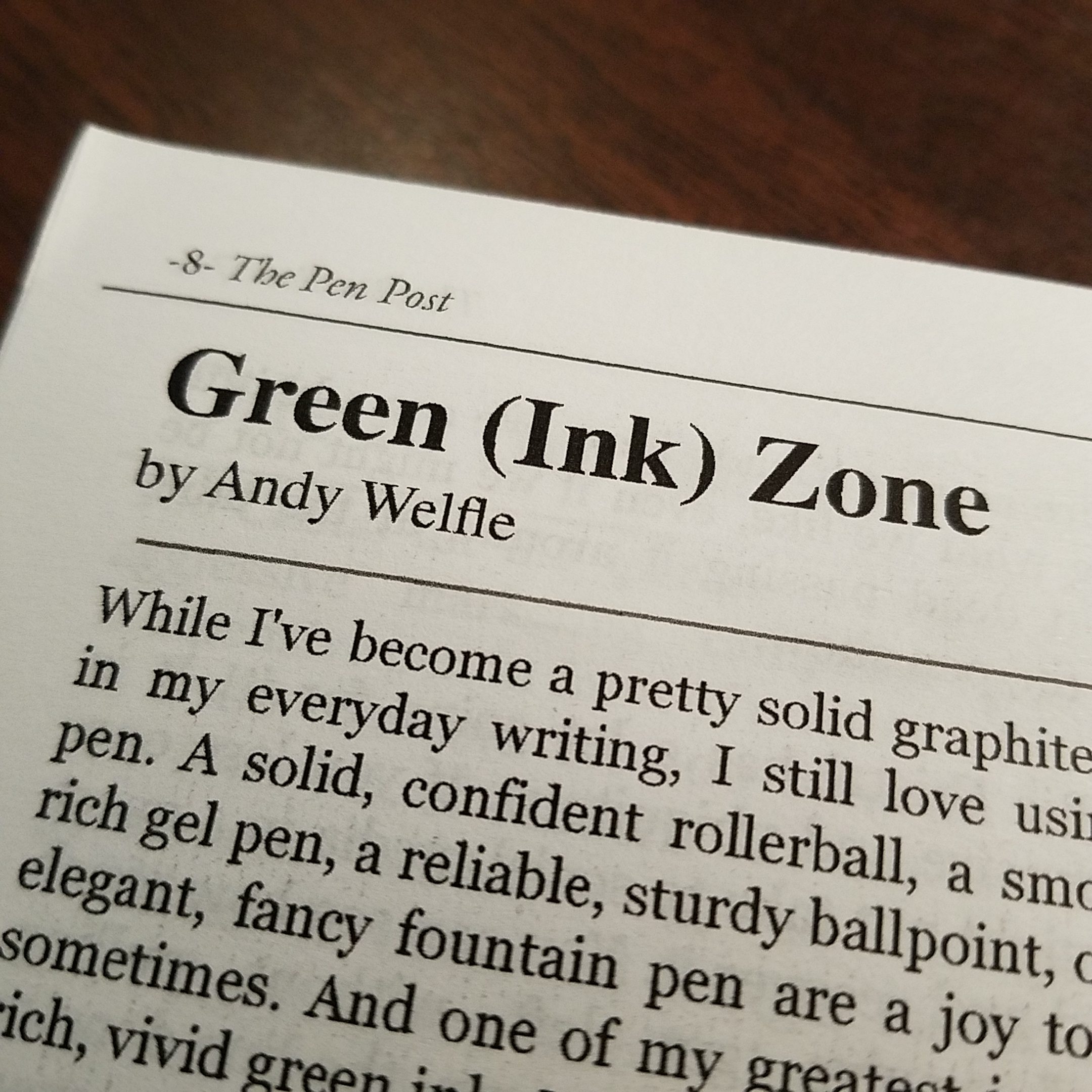 Inside the zine is loaded with fun pen information and articles. Johnny has enlisted an assortment of friends to write for the zine. The intro is written by none other than the Pen Addict himself, Brad Dowdy. Andy Welfle details his search for the perfect green fountain pen ink.