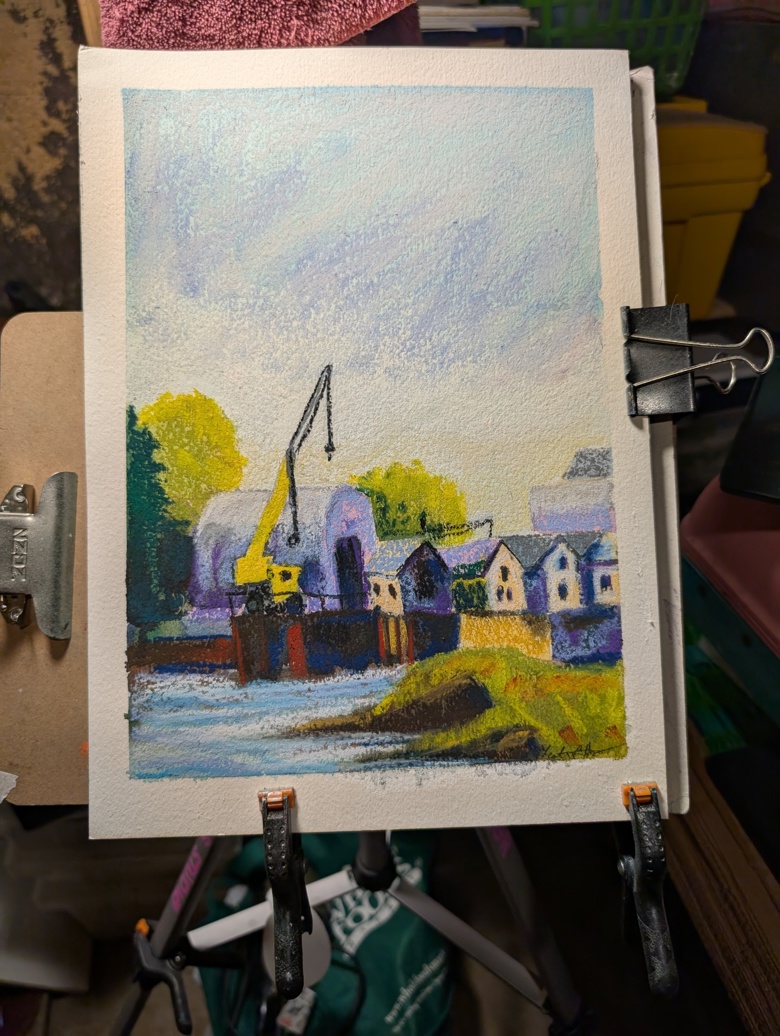 I think I did a good job on this one and really like how the blues and purples and browns make the dark darks while the sunlight is warm. The sky could have been more dramatic, but ah well, it was a simple bright sunny day.