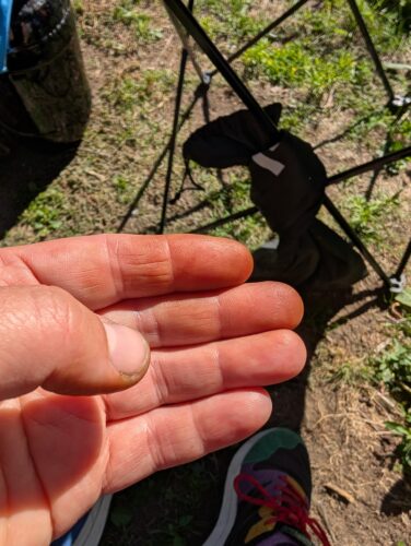 Next thing to acknowledge- Black walnuts are probably the best bang for effort when making ink. My first batch used only 15 walnuts and produced about a cup of ink. That’s huge when compared to acorn caps. In terms of effort, it can be done with minimal effort as well. My second batch used about 40 walnuts and used cold soaking only and heat to reduce it and has produced even more ink. This does not adequately show how stained my fingers are from using the WRONG gloves.