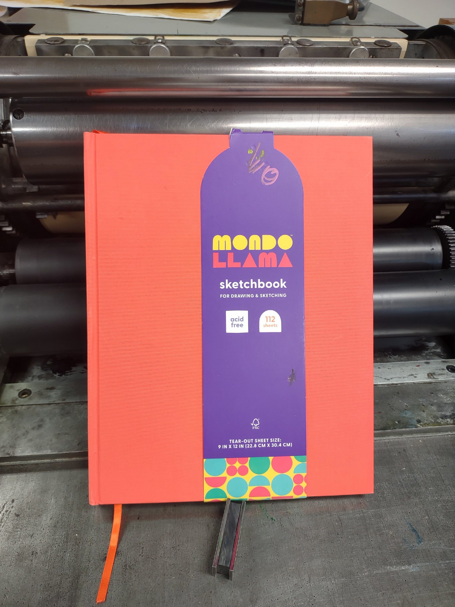 I’m always on the lookout for low priced sketchbooks. While I like to have my young artists make their own, there is a certain amount of seriousness and implied meaning to gifting a young artist with a big ole sketchbook of their own. When I saw the hardcover Mondo Llama sketchbooks on display at Target’s Back to School Sale for $6, I was skeptical but hopeful. I picked up one on my own dime after touching the pages and feeling a smooth but toothy surface.