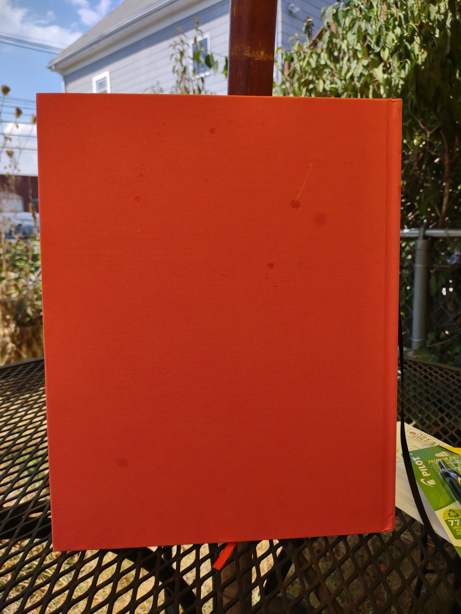 I’ve used the red version for about a year and it’s stood up to being used in my lap during meetings, being tossed into bins, slid across tables, dropped down a flight or 2 of stairs, and being used as a coffee coaster. The elastic is still tight and the binding feels solid. I’ve used it in professional meetings and in groups with kids where I show them about sketching and planning out prints and other projects. It’s been used 5 days a week in a busy print studio.