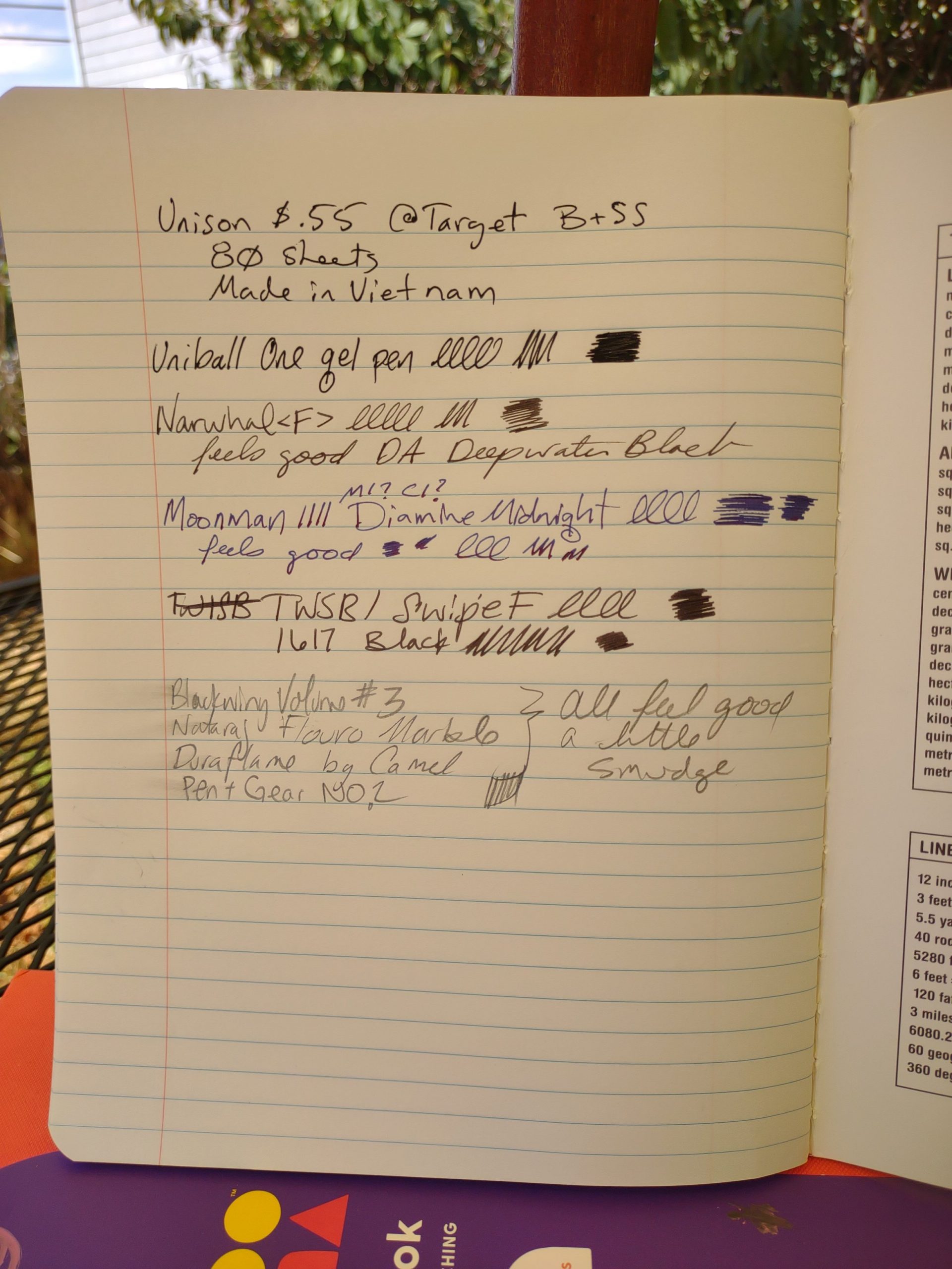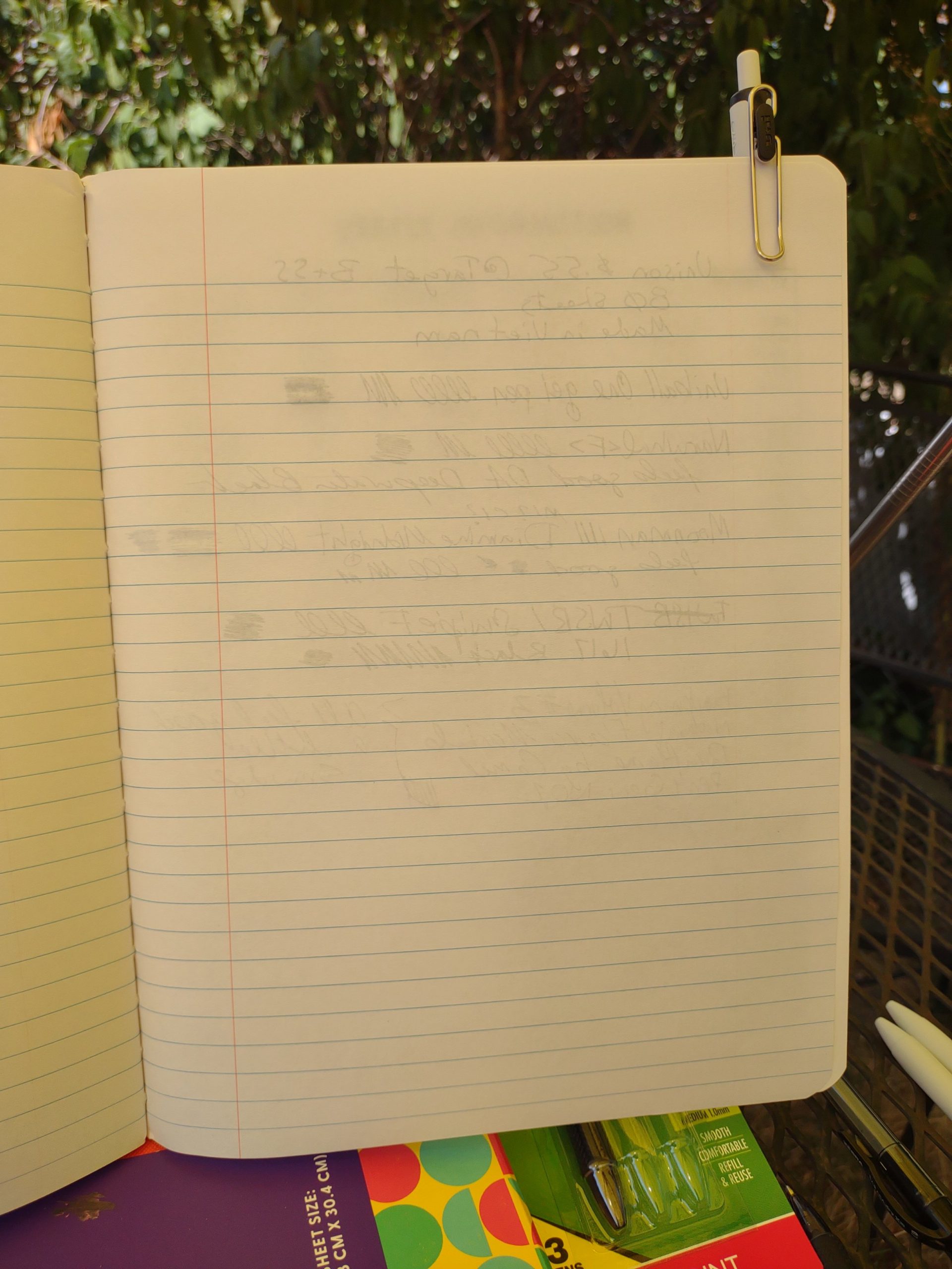 The whole experience of using these comp books is quite unpleasant. I suspect using pencils would frustrate most people and if you use anything but ballpoint on this paper it’s gonna soak through. And I suspect that even a juicy ballpoint like a Bic Cristal xtra smooth would soak through! At $1.25 they are way overpriced and not worth the spend when you can get far better comp books at Staples for 50 cents! These are so bad that I don’t even want to take pictures of the pages. What a mess.