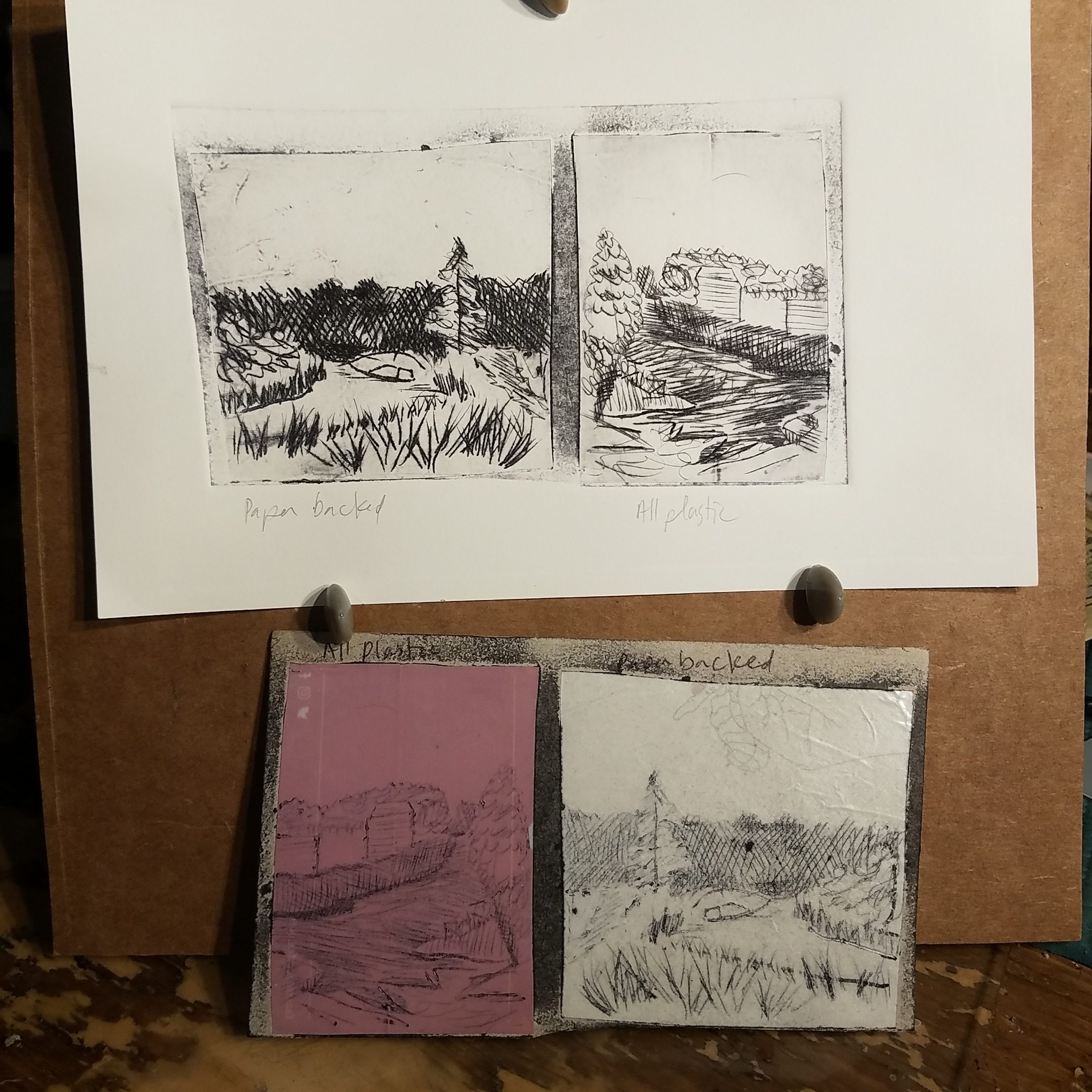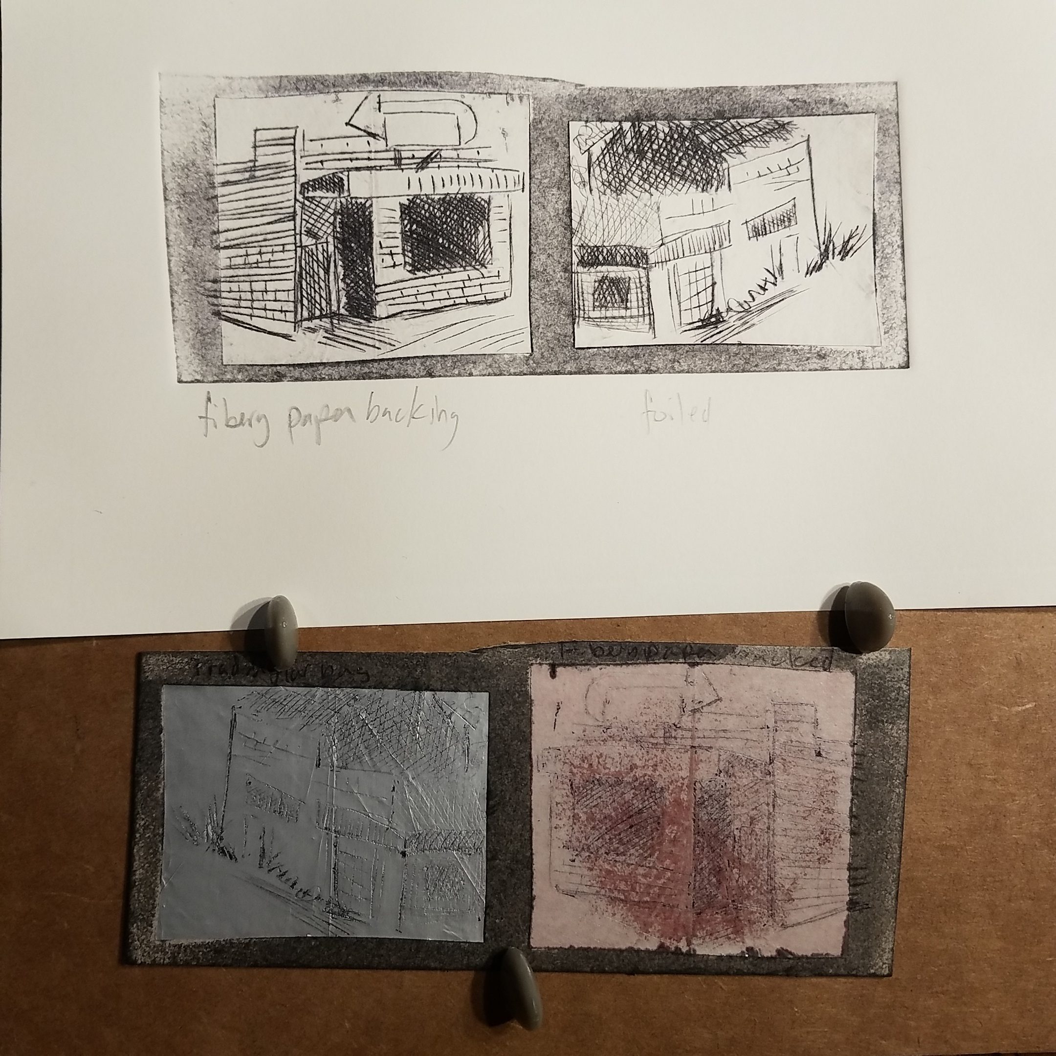 The carton is thin and made of pulpy single wall cardboard and should be mounted to either a piece of heavier carton or some manilla folder with wood glue or even white PVA (Elmer’s.) After that the carton can be carved/etched.