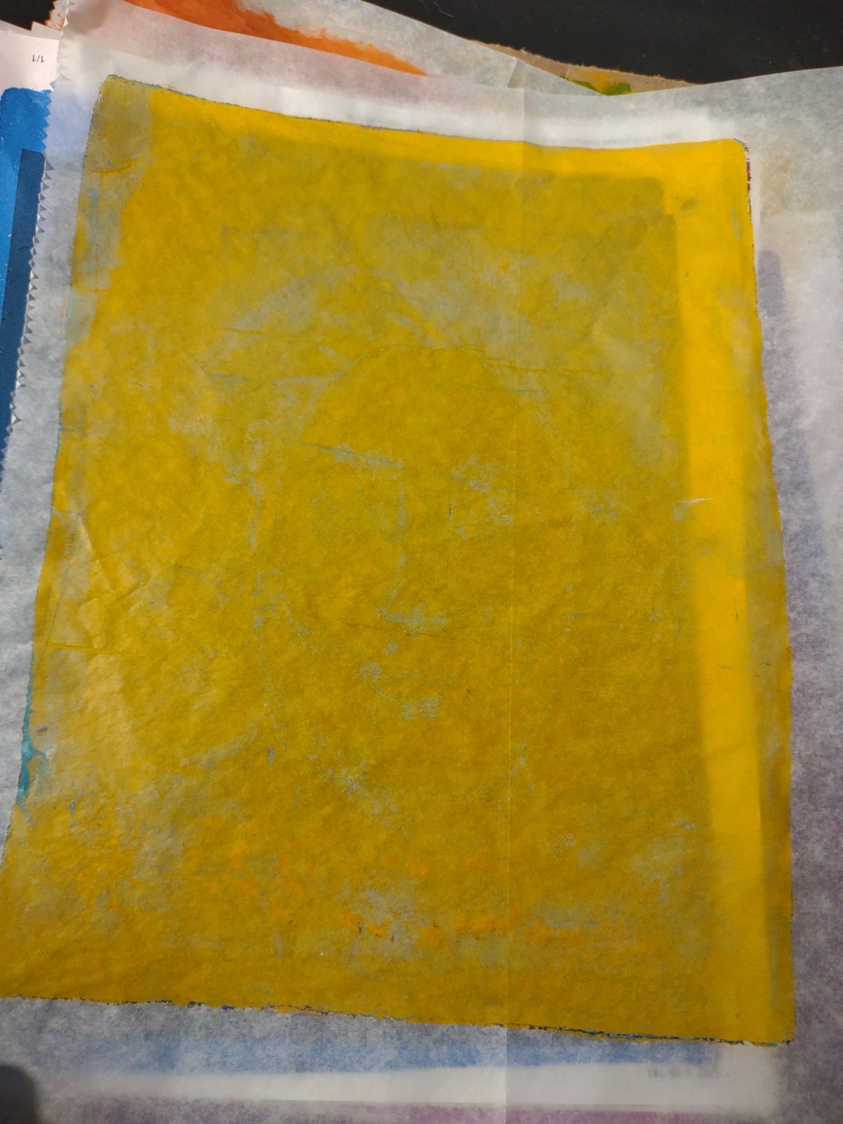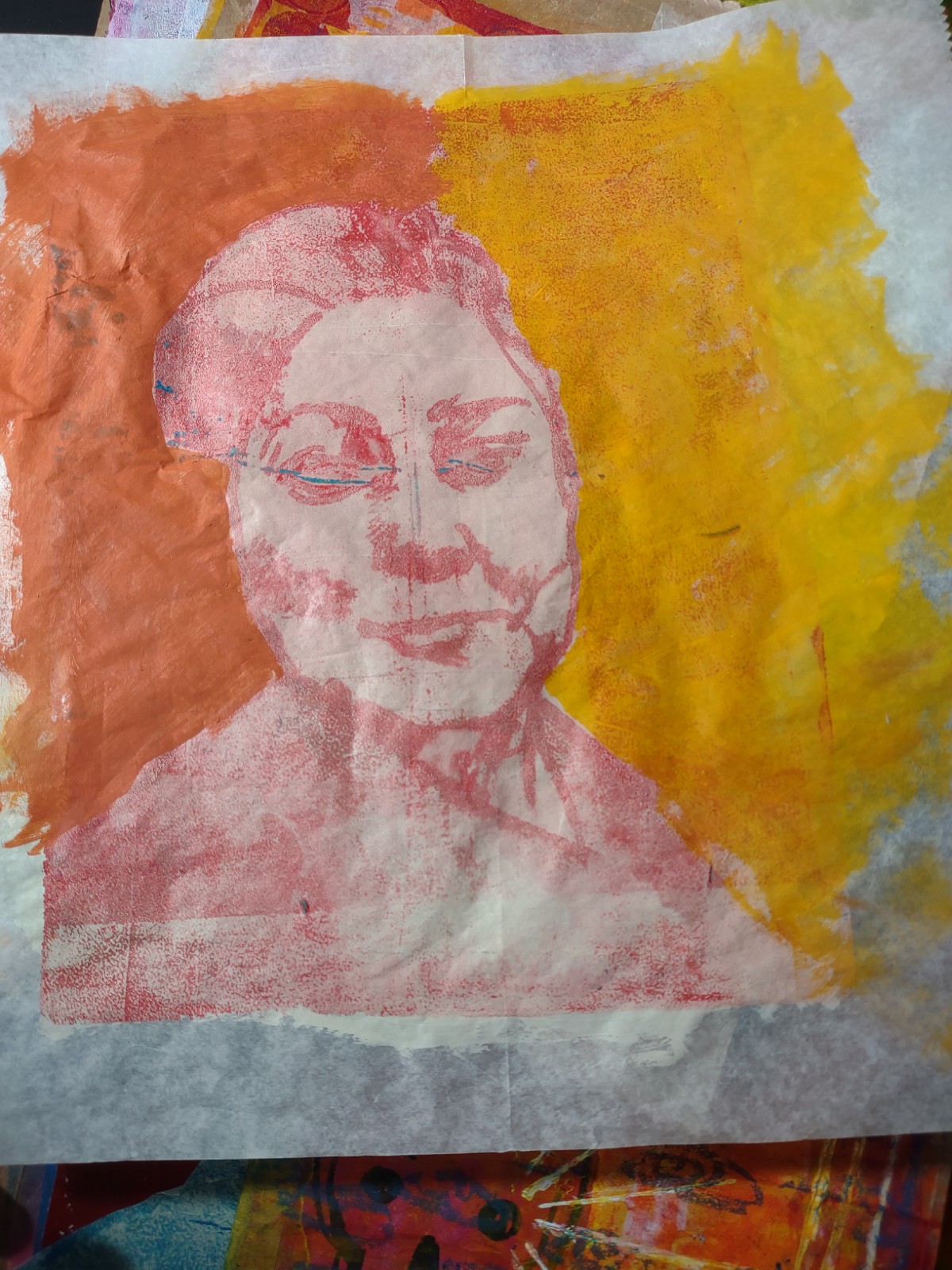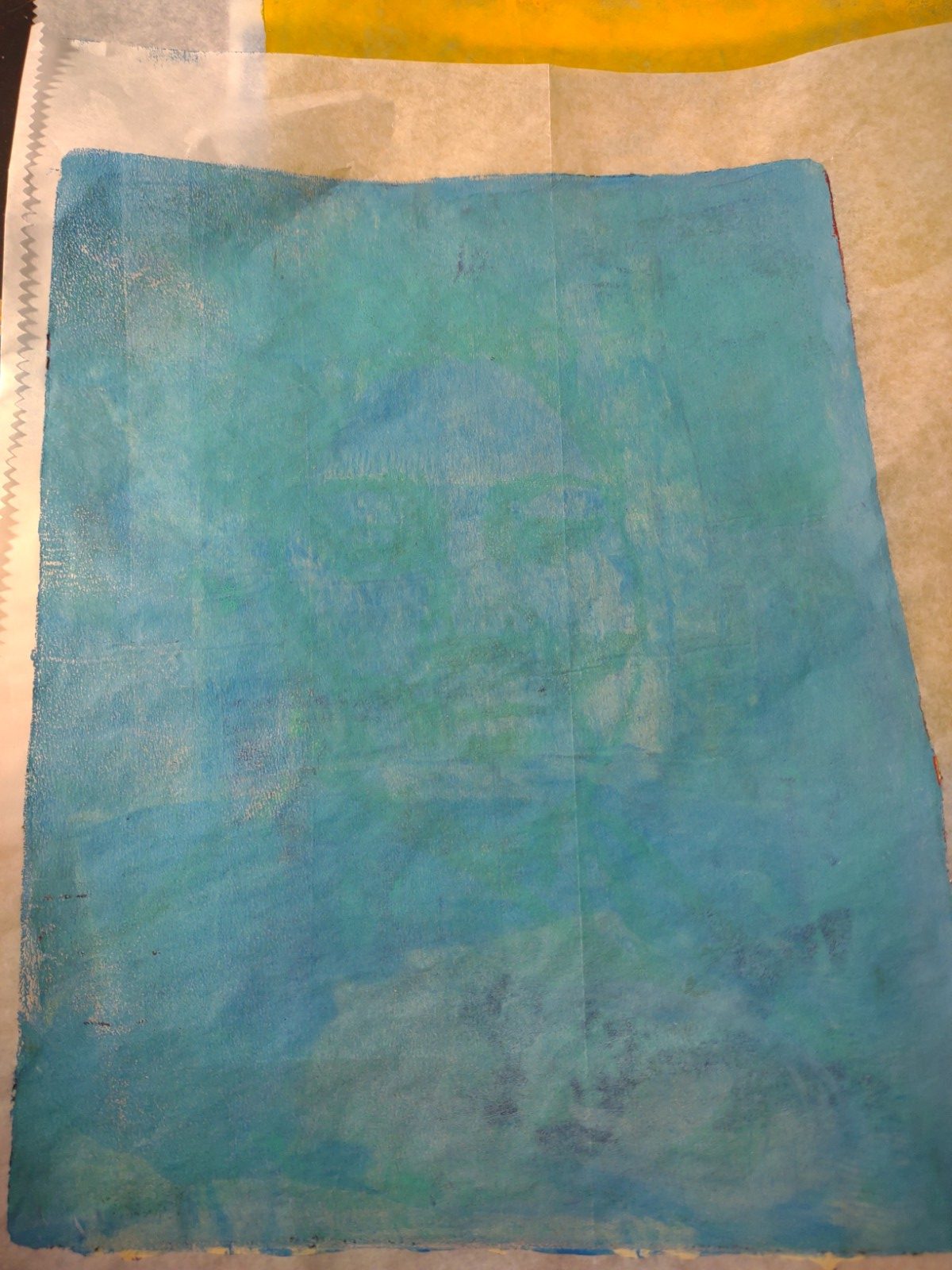I finally made my own gel plate with gelatin, glycerin, rubbing alcohol and water. I used a microwave method, which seems to be the best method for me. Most of the instructions I found use a double boiler set up. It’s too hot for that in my house.