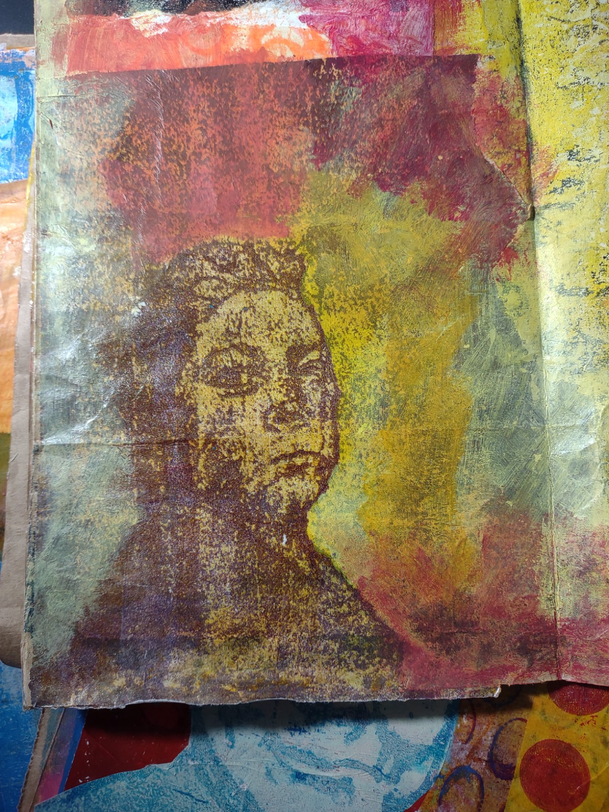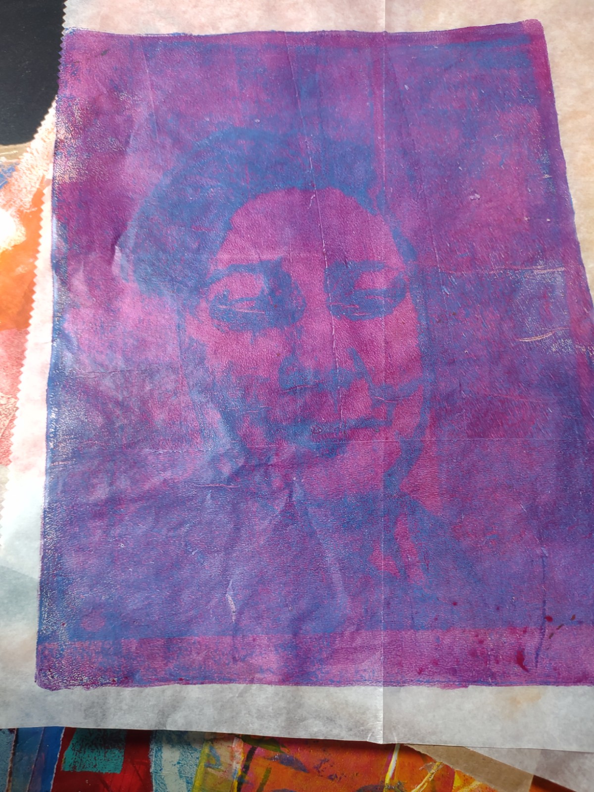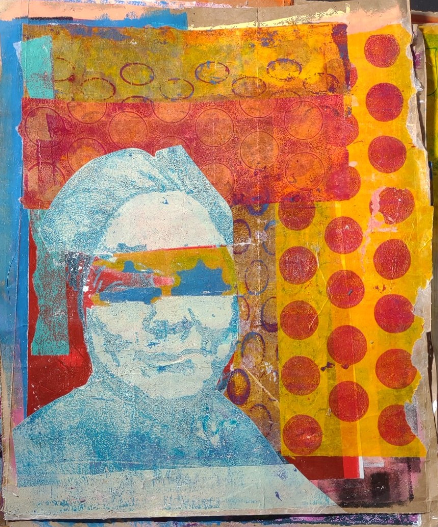 I finally made my own gel plate with gelatin, glycerin, rubbing alcohol and water. I used a microwave method, which seems to be the best method for me. Most of the instructions I found use a double boiler set up. It’s too hot for that in my house.