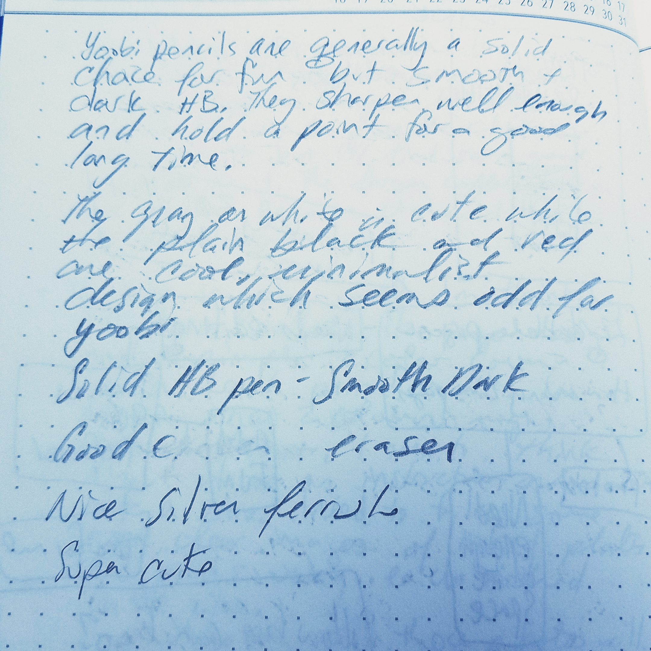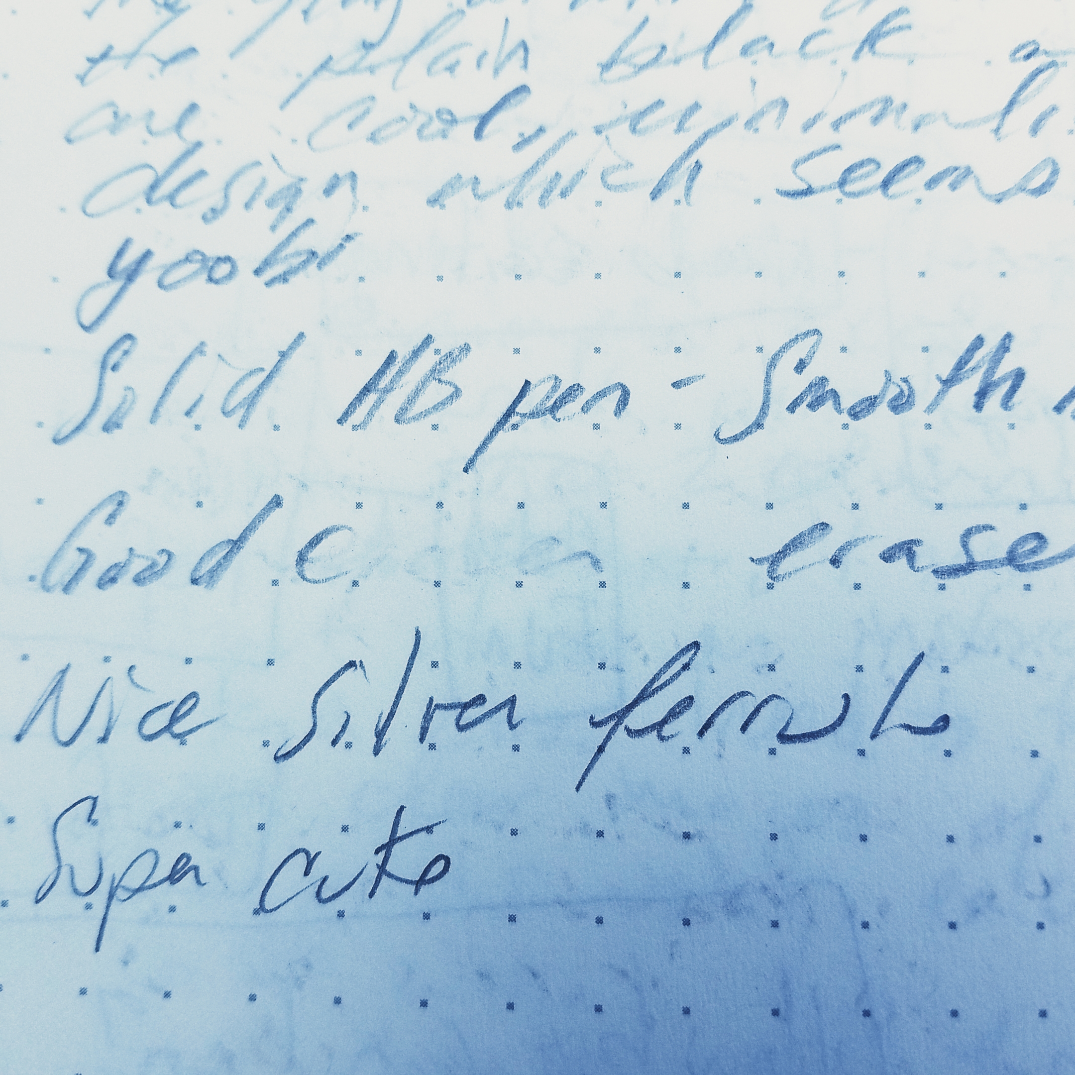 The surface is also AMAZING for pencil, up there with Yoobi notebooks. It’s got an exceptional tooth that makes even a generic HB look nice and dark but isn’t like writing on rough sandpaper.