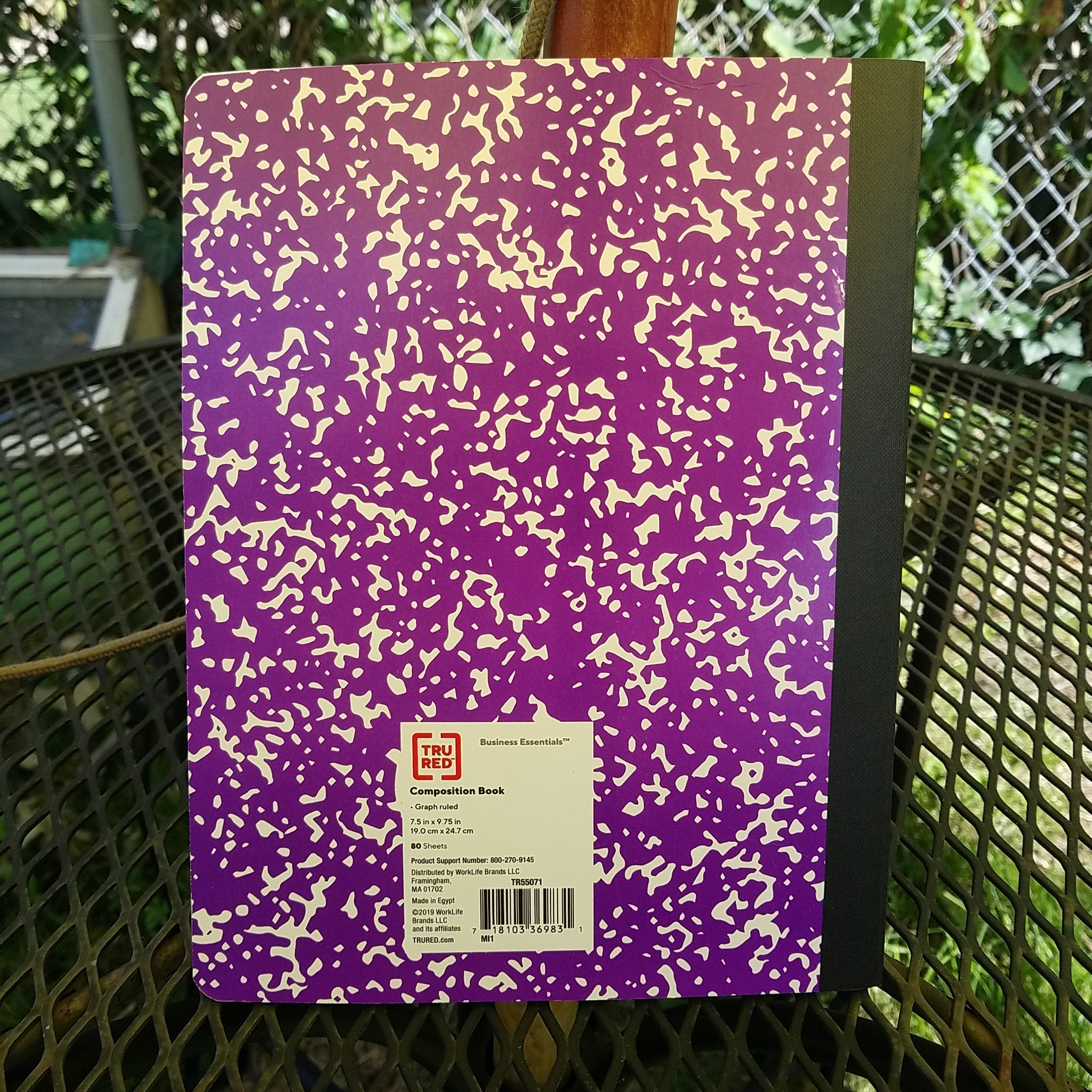 The card covers are thin and flexy. You won’t be writing out of hand with this book. The cover is subtly printed with narrow lines of a lighter tone than the background. In this case dark gray on dark blue. It’s a subtle pattern. It’s not a classic. That said, in the lighter colors, this would be a stellar notebook cover for doodles. I only saw black, red, and blue. Though to be fair the composition notebook section was a mess of piles and mashed together books. Customers had already thrashed the place.