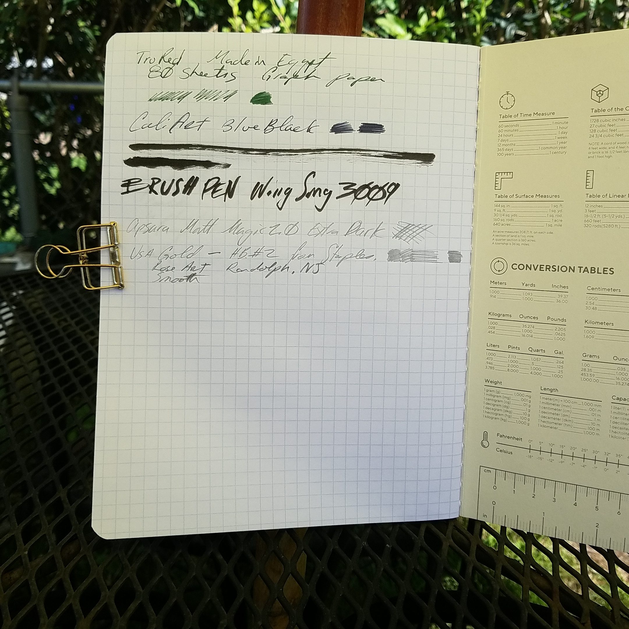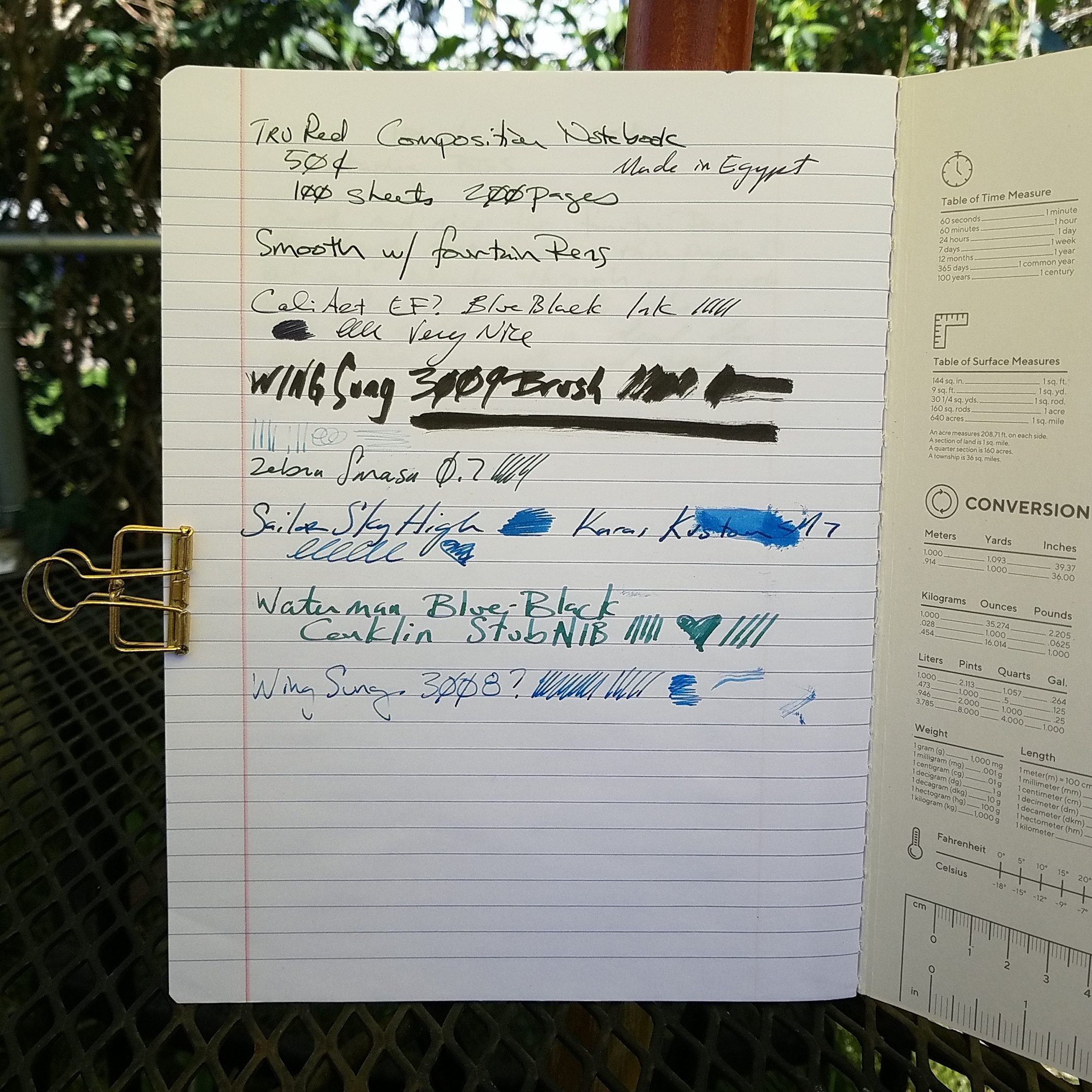 Overall this is a fantastic choice if you want something bright and colorful that accepts fountain pens, brush pens, pencils, and seemingly everything I tossed at it. The only downside is that the cover is thin and it lacks spine tape, which I honestly think is a necessary feature of comp books. At $2.99 it’s pretty pricey, especially when compared to other brands that sell for far less. That said, getting a comp book with thick paper that handles fountain pens and brush pens well is a bit surprising.