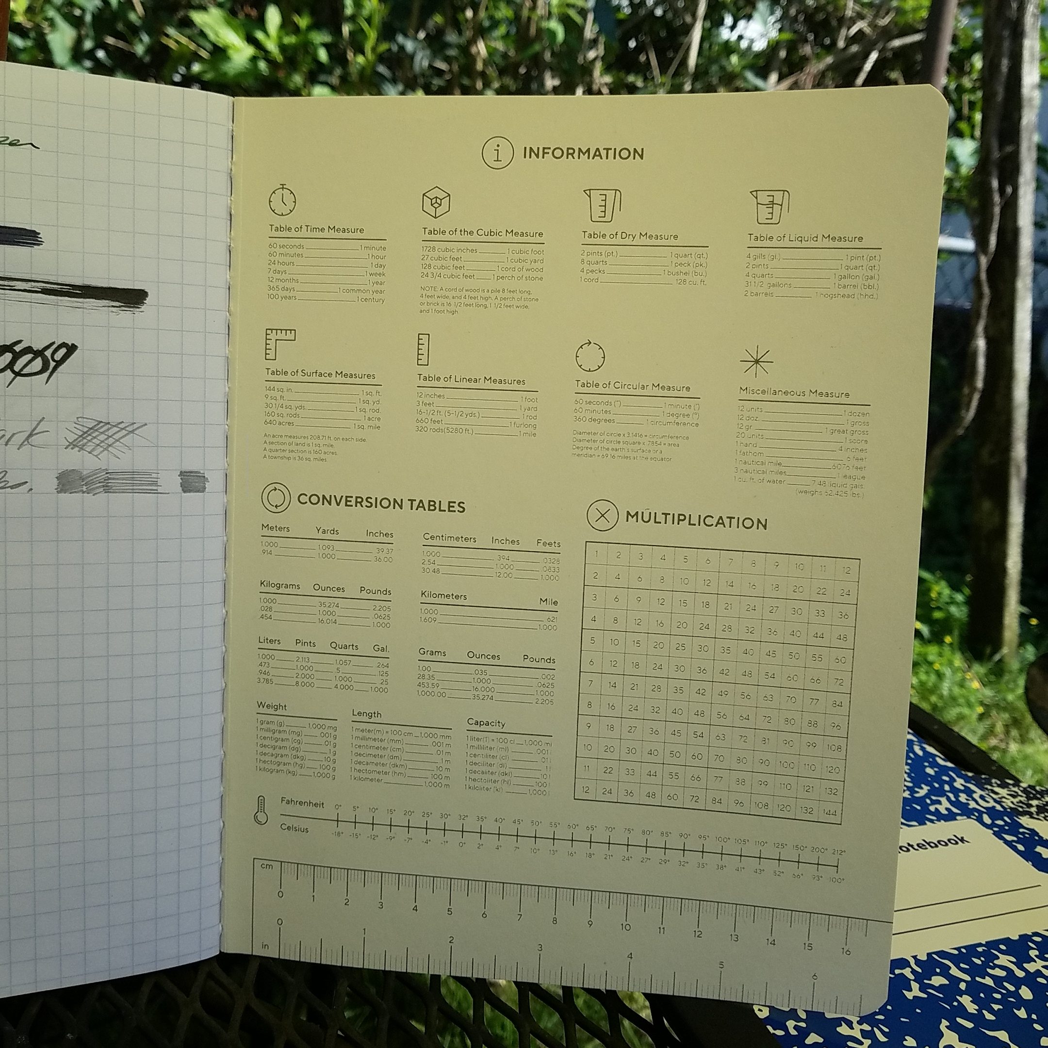 The subtle design is where everything good ends in this book. The paper is thin and slick. Everything slides off it’s surface. There’s no tooth for pencil. Even my 4b NanoDia lead was pale gray and washed out looking. To get a decent mark from HB pencils I had to jam the point into the page. Ballpoint feels like crap. Gel feels okay but even a Pilot G2 bleeds through. Fountain pen feels okay but the paper soaks ink into it like blotter paper.