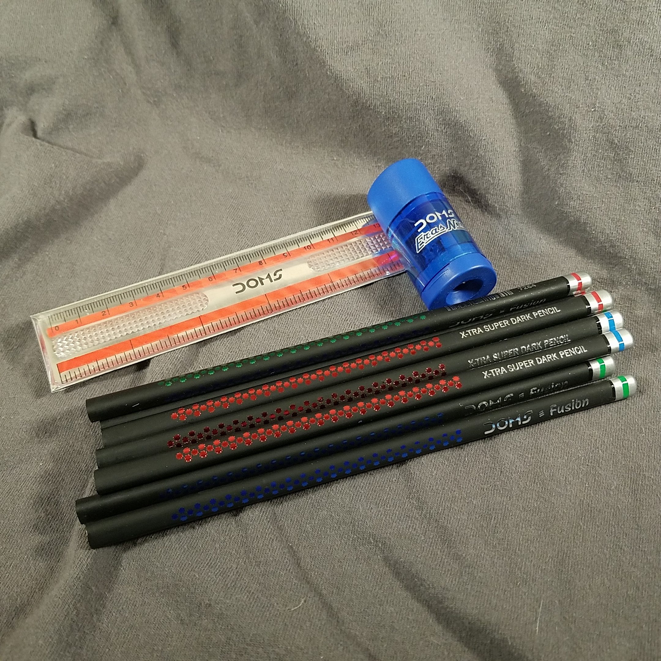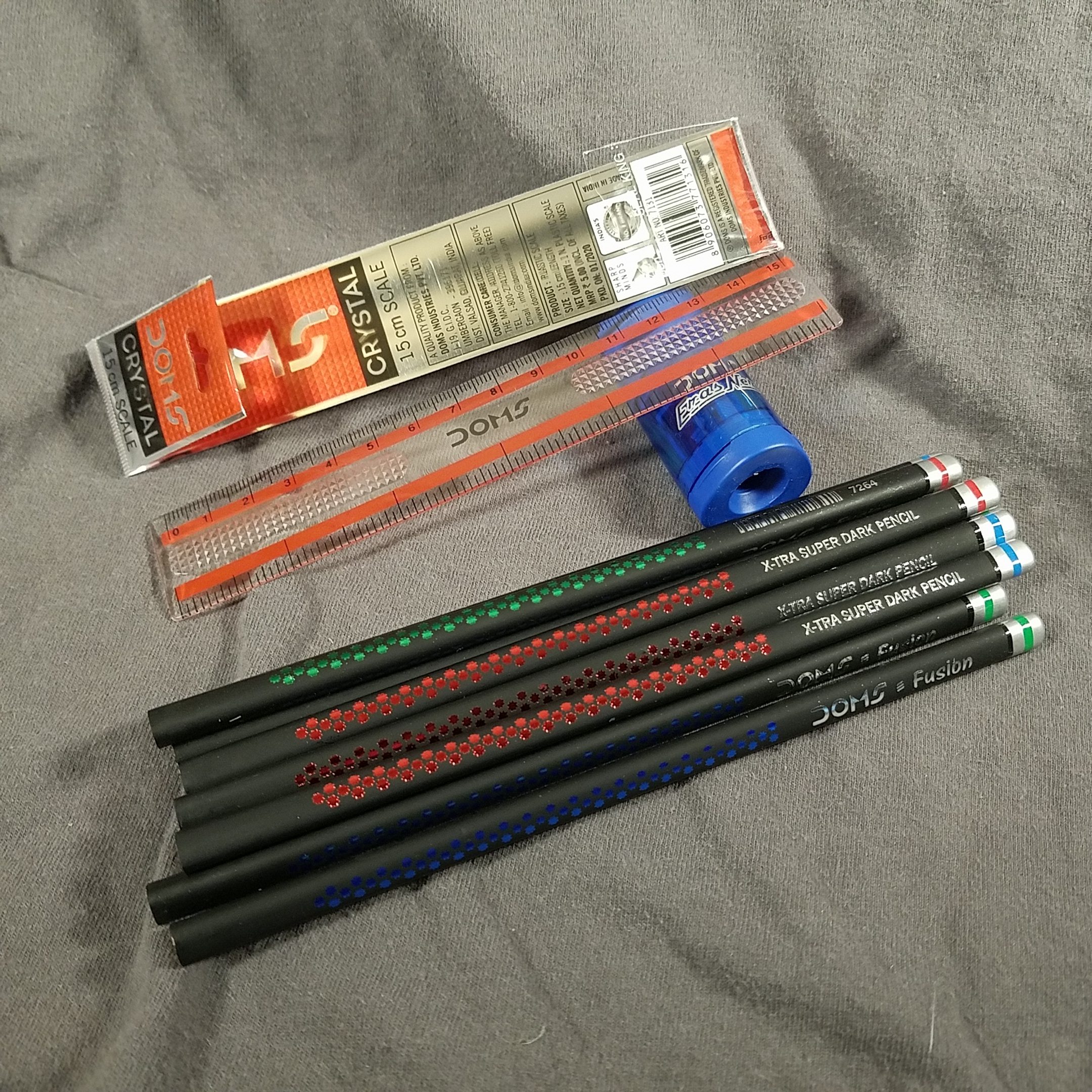 Mine sports 3 differently colored ribbon place markers, that were well heat sealed upon purchase but I hit them with a lighter to get the seal stronger. At the back there is a pocket and an elastic to hold the whole thing shut.