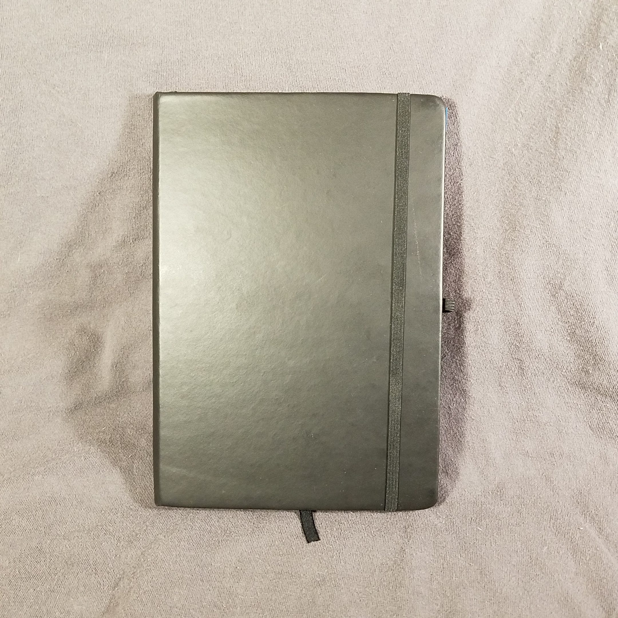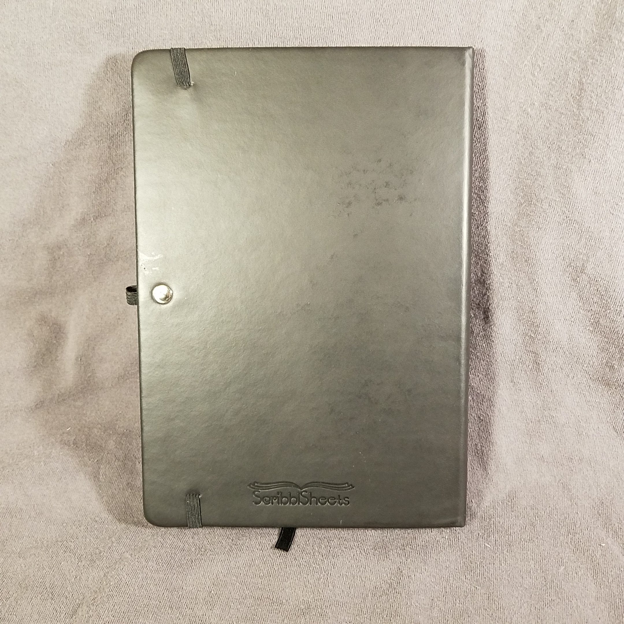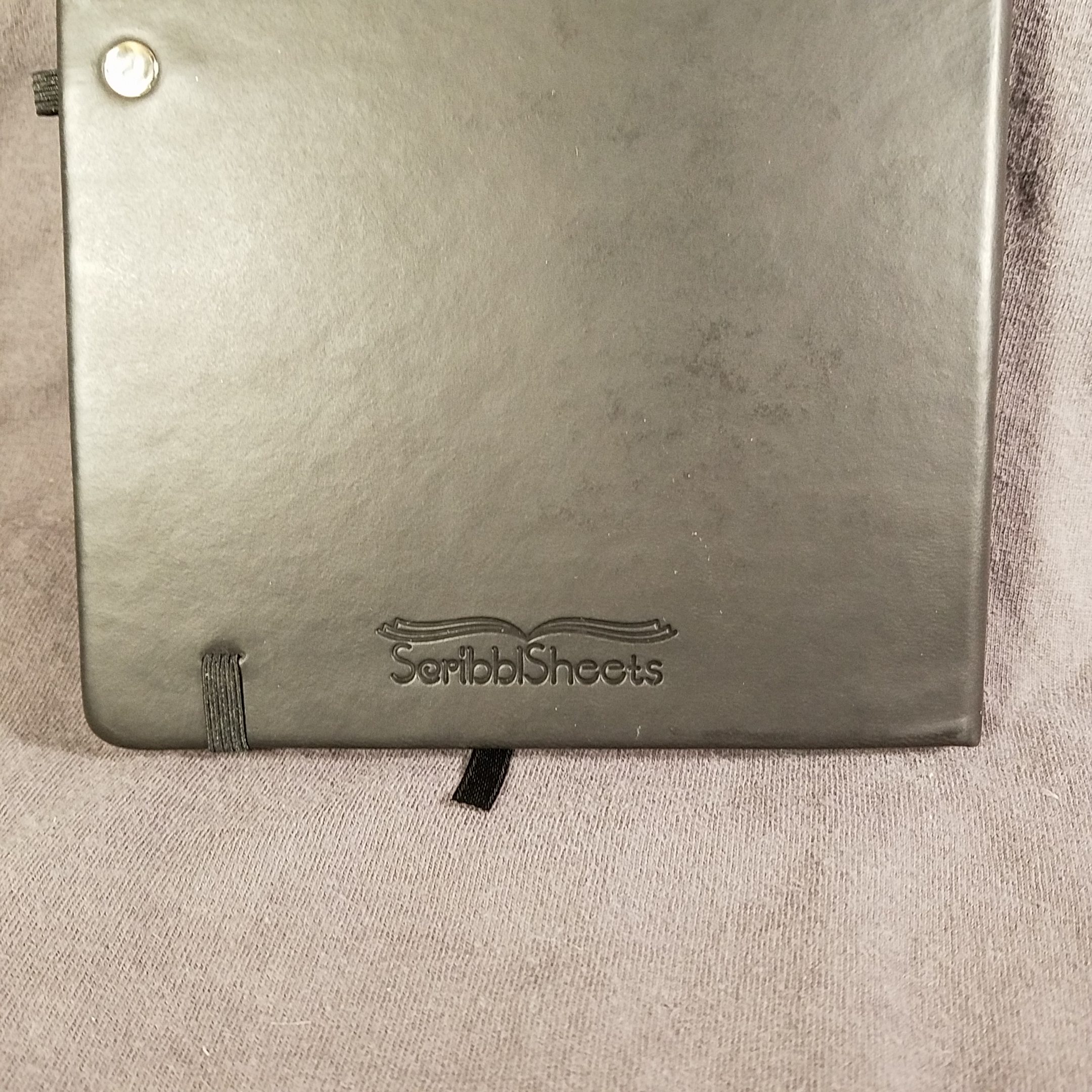 The covers are black vinyl or what everyone is calling vegan leather these days, and I won’t rant on the disingenuous nature of the idea of vegan leather. It’s plastic, and vinyl at that. It’s a nice vinyl and feels grippy and slightly squishy. On the lower back cover the ScribblSheets logo is debossed. It’s small and tastefully done.