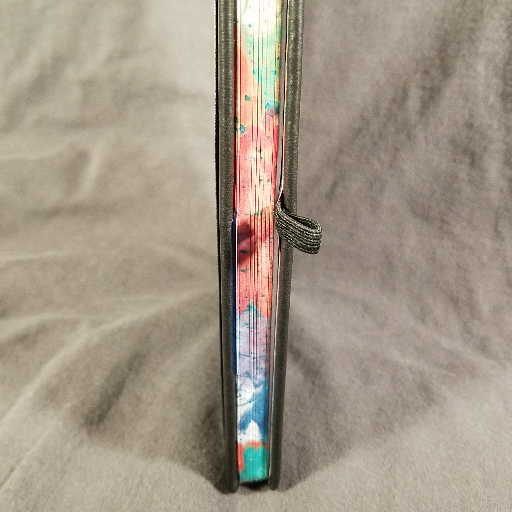At first glance the ScribblSheets Orange Opal Edge journal looks like a standard moleskine style journal, and in many ways it is. It measures 8.25×5.75 inches or 21x14cm also known as A5. It includes a sturdy elastic and a generously long narrow ribbon. The ribbon arrives heat sealed but I hit mine with a lighter just to get that seal a bit extra.