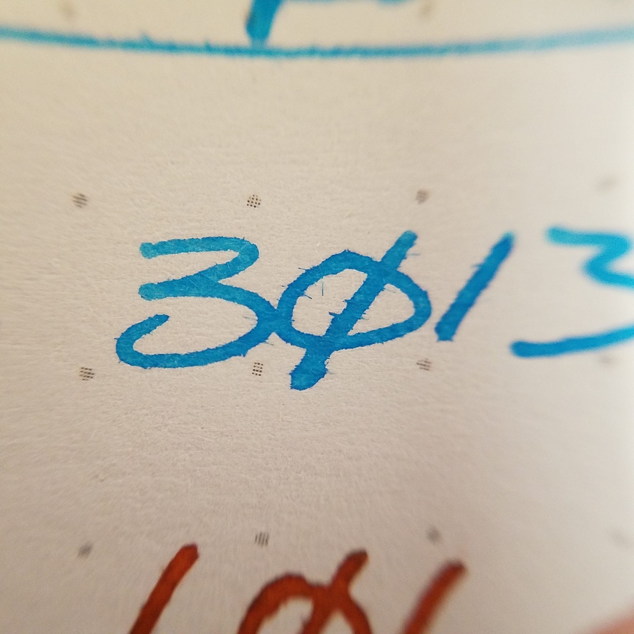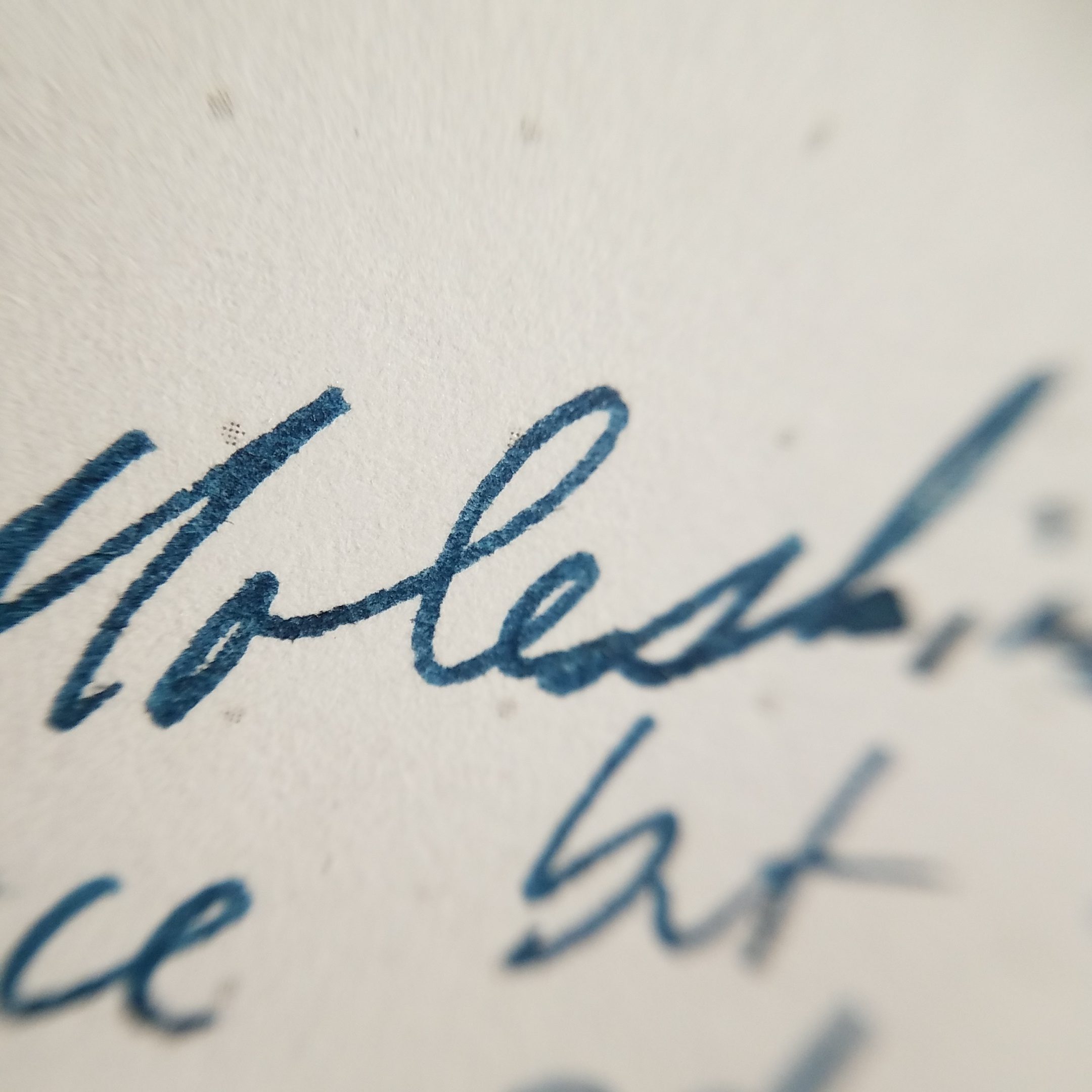 The paper does okay with finer nibs and well behaved fountain pen inks. You’ll be able to see in the images some long fibery feathering that reminds me of the old moleskine paper. But then it does fine with other inks and nibs. Generally, thus far I’ve been sticking to my Wing Sung 3013 loaded with Shaeffer Skrip Peacock Blue. It has been doing really well with this ink.